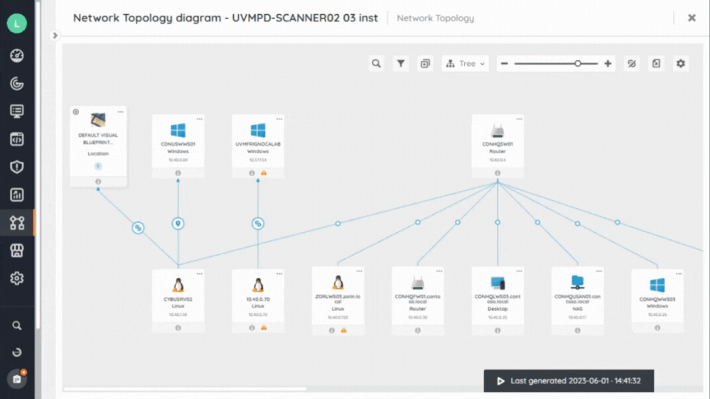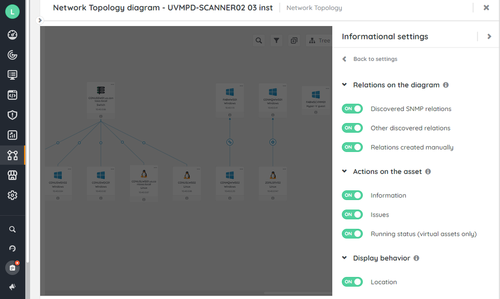 - Discovered SNMP relations: Relationships discovered automatically based on the network information available in your Inventory.